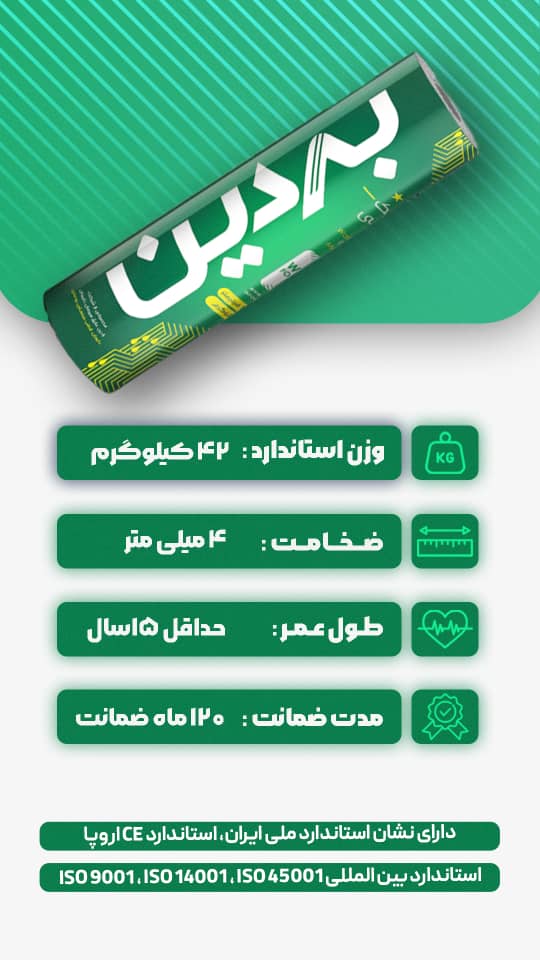 ایزوگام بردین دلیجان محصولی از شرکت هیرمان باکیفیت بالا و دارای طول عمر حداقل 14سال در وزن 42کیلو ضخامت 4میل دارای استاندارد ملی ، 10سال ضمانت نامه کتبی